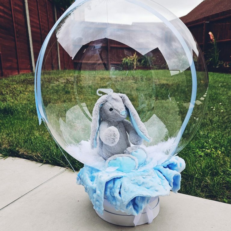Adorable balloons with soft toys and cozy details, perfect for welcoming new life.
